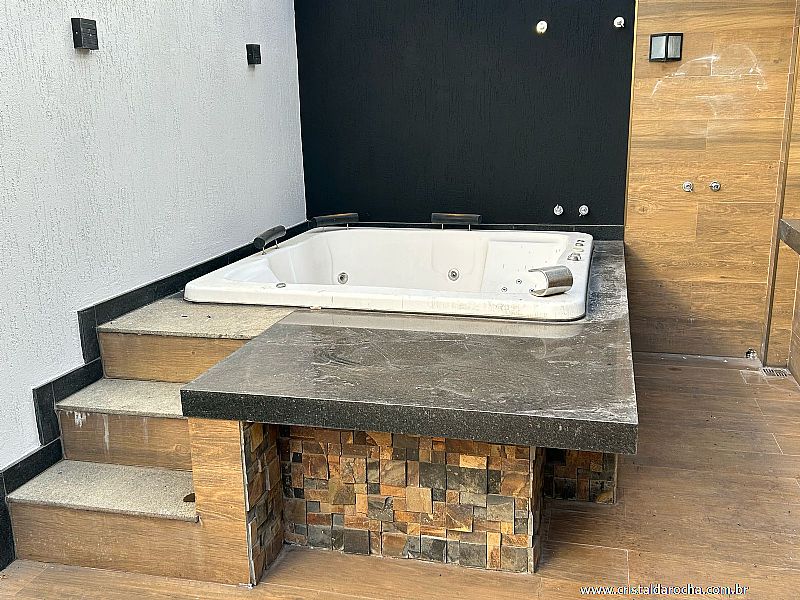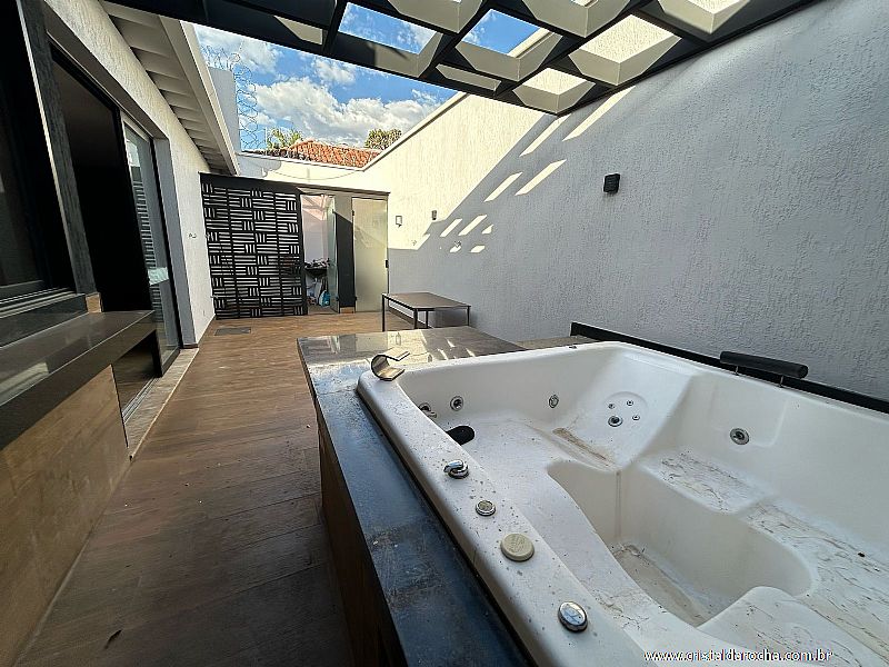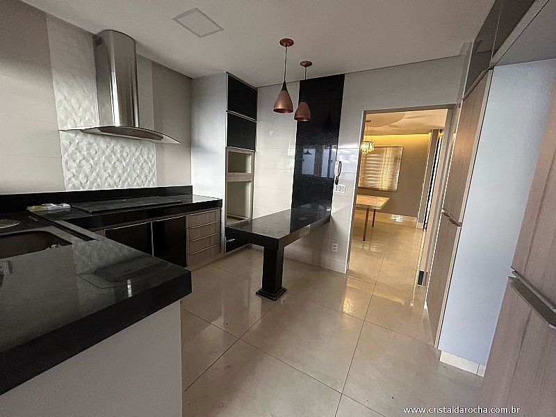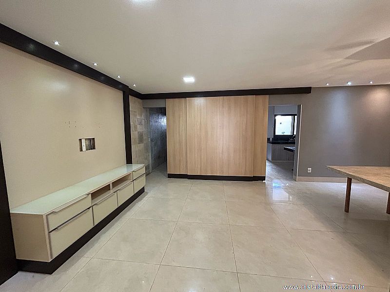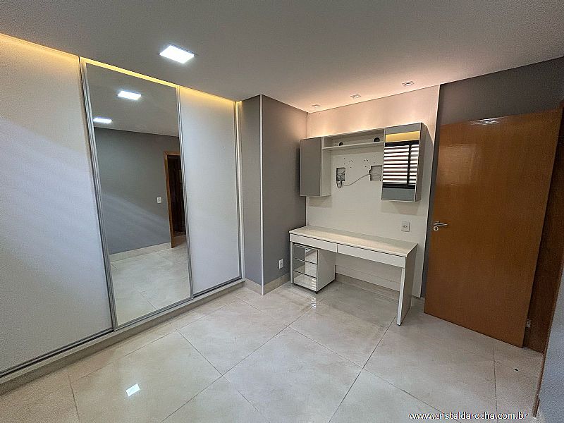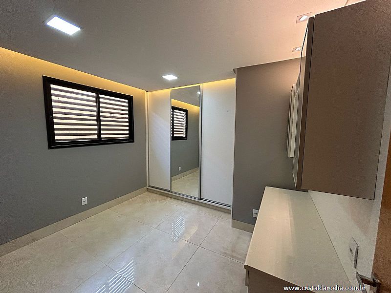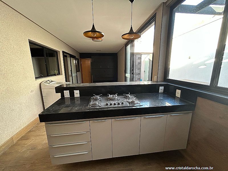 CASA TÉRREA COMERCIAL E RESIDENCIAL, contendo: 04 quartos com armários e escrivaninha, sendo 02 suÃtes com armários, banheiro social, sala com 02 ambientes com armários e mesa em mármore, cozinha riquÃssima em armários, sugar, varanda gourmet, churrasqueira, balcão em granito, banheira, quintal e garagem para 04 carros. |