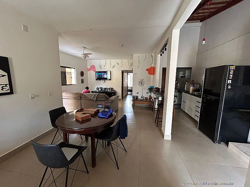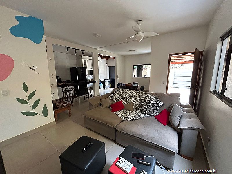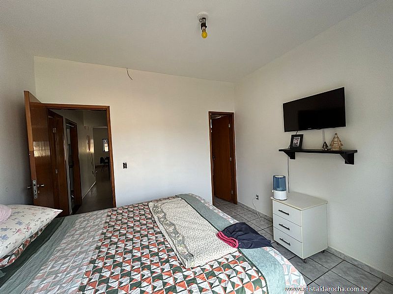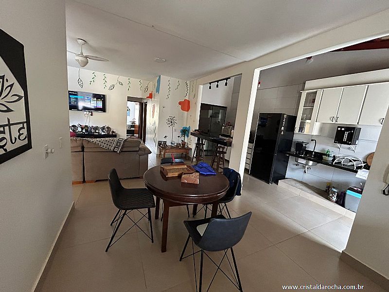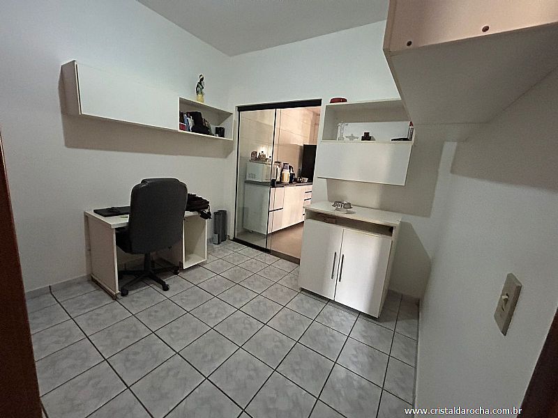 03 Quartos, sendo 01 suÃte, 02 quartos com armários, sala c/ 02 ambientes, cozinha c/ armários, área de serviço, banheiro social e garagem p/ 03 carros.